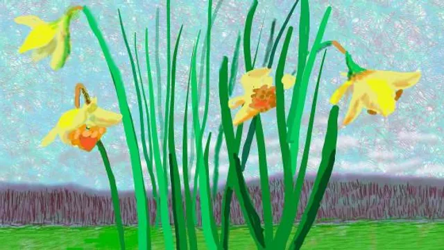 In maart vorig jaar, op het hoogtepunt van de eerste coronalockdowns wereldwijd, stuurde Hockney deze afbeelding via de Instagram-accounts van twee musea de wereld in. De afbeelding werd veelvuldig gedeeld: de troostrijke belofte dat in elk geval de lente áltijd doorgaat konden we wel gebruiken.