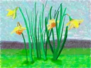 Eén werk uit Hockneys lente-serie kreeg wél een titel: een bosje narcissen in het gras heeft behalve een datum (16 maart), ook een titel: Do remember they can't cancel the spring.