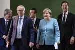 Van links naar rechts: Italiaanse Premier Paolo Gentiloni, Voorzitter van de Europese Commissie Jean-Claude Juncker, Franse President Emmanuel Macron, Duitse Bondskanselier Angela Merkel en Premier Mark Rutte (foto: EPA, Clemens Bilan).